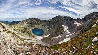 Central Rila, known also as Skakavitsa Rila, is the smallest part spanning 9% of the Rila's total area but has the most Alpine character and the highest average altitude — 2,077 m.[6] It stretches between the valleys of the rivers Beli Iskar, Cherni Iskar, Levi Iskar, Iliyna and Rilska. The later divides the two main ridges in Central Rila, Skakavitsa and Rilets. The highest summit is Cherna Polyana (2,716 m);[12] other important peaks are Skalata, Small and Big Skakavets, Rilets; there are 28 peaks over 2,100 m.[3][6] This subdivision is renowned mainly for the glacial lakes Ribni, Dzhendemski, Manastirski, as well as the largest glacial lake in the Balkan Peninsula — Smradlivo Lake.[4]