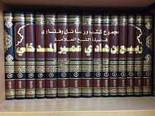 Al-Madkhali has authored over 30 works in the field of Hadith and Islamic sciences, much of which has been compiled into a 15 volume set [11] In 1984, the book which brought him fame in the Saudi religious field, 'Manhaj Al-Anbiyah Fi Da’wah Ila Allah' (The Methodology of the Prophets in Calling to Allah), caused controversy over Al-Madkhali's criticisms of the Muslim Brotherhood and their methods in Muslim missionary work.[12] According to Lacroix, Al-Madkhali insisted that priority must be given to correcting Islamic creed amongst the people, whereas the Muslim Brotherhood's initial focus was on political reform.[12] Some observers state that Al-Madkhali is most noted for his refutations of Islamic thinker Sayyid Qutb. Al-Madkhali received acclamations for his works refuting Sayyid Qutb from other Salafist scholars such as Saleh Al-Fawzan, Muqbil bin Hadi al-Wadi'i, and Muhammad ibn al Uthaymeen.[13] Of his four books on Sayyid Qutb, 'Adhwa Islamiyyah ala aqidat Sayyid Qutb wa fikrihi' is considered the most important.[14] Apart from his controversial works in refutations, Al-Madkhali has authored several books in the field of hadith. His Master's thesis, 'Between the two Imams: Muslim and Daruqutni' is recommended by some of Saudi Arabia's senior scholars for experienced students of Hadith.