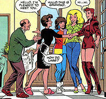In at least three alternate future timelines derived from "Days of Future Past", a Rachel Summers married Franklin Richards and procreated mutant children. One such child was the time-traveling supervillain Hyperstorm (Jonathan Richards). Hyperstorm was responsible for causing the Fantastic Four to think that Mister Fantastic (Jonathan's grandfather) and Doctor Doom were dead; he was only defeated when he was trapped in another dimension by Galactus.[3] The second child was Dream Summers, who possessed empathic superpowers. She was a superhero who appeared in the Spider-Man/X-Men: Time's Arrow trilogy of novels (although Marvel Comics novels tend to be considered non-canon).[4] In a third reality, they produced a child named David Richards, who was rescued from a concentration camp by the interdimensional traveling Exiles and raised by the "Age of Apocalypse" version of Sabretooth.[80] David's traumatic experiences at the camp motivated him to become a fanatical murderer.[81]