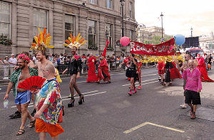 In the late 1990s Faeries sustained the New York City Drag March, an activist event held the Friday before the corporate-sponsored NYC Pride March.[58] The Drag March began in 1994 in response to attempts to ban leather and drag during festivities marking the 25th anniversary of the Stonewall riots.[59]