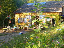 In keeping with hippie, neopagan, and eco-feminist trends of the time, gatherings were held out-of-doors in natural settings.[13] To this end, distinct Radical Faerie communities have created sanctuaries that are "close to the land".[14]