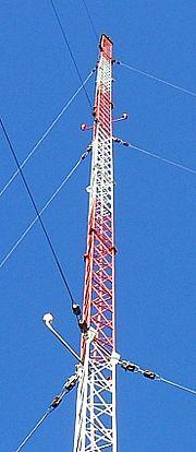 A mast radiator or mast antenna is a radio tower or mast in which the whole structure is an antenna. Mast antennas are the transmitting antennas typical for long or medium wave broadcasting.