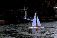 Sailboats use the power of the wind acting on sails to propel the boat. Model sailboats are typically controlled via a multi-channel radio transmitter in the hands of the operator with a corresponding receiver in the boat. By changing the position of the two joysticks on the transmitter signals are sent over two separate channels on a single radio frequency (assigned to the individual boat/operator). On the boat, the radio receiver is connected to two battery-powered electric motors or servos. Signals from the radio transmitter are interpreted by the radio receiver and translated into instructions to change the position of the servos. One servo controls the position of both main and jib sails together (allowing the sails to be trimmed), the other the position of the rudder (allowing the boat to be steered).