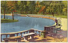 A casino was built overlooking the springs in the 1920s, and Radium Springs was a popular spa and resort. Northerners traveling by train to spend winter in Florida often stopped to swim in the springs, which were thought at the time to be healthful because of the radium content.[2] The casino was severely damaged when the river flooded in 1994, and again in 1998, and was demolished in 2003.