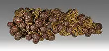 Raffia palms (Raphia) are a genus of about twenty species of palms native to tropical regions of Africa, and especially Madagascar, with one species (R. taedigera) also occurring in Central and South America.[1] R. taedigera is the source of raffia fibers, which are the veins of the leaves, and this species produces a fruit called "brazilia pods", "uxi nuts" or "uxi pods".[2]