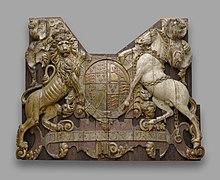 Royal Charles, her draft too deep to be of use in the shallow Dutch waters, was permanently drydocked near Hellevoetsluis as a tourist attraction, with day trips being organised for large parties, often of foreign state guests. After vehement protests by Charles that this insulted his honour, the official visits were ended and Royal Charles was eventually scrapped in 1672; however, part of her transom, bearing the coat of arms with the Lion and Unicorn and the Royal inscription Dieu et mon droit, was preserved because Charles earlier had demanded its removal and it has since 1883 been put on display in the cellar of the Rijksmuseum in Amsterdam.[14]