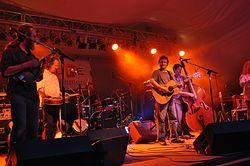 Railroad Earth is a bluegrass-influenced American band formed in Stillwater, New Jersey in 2001.[1] The band's music combines elements of progressive bluegrass, folk, rock, country, jazz, Celtic and other Americana influences. Recognized as "carrying on the tradition of improvisational, genre-spanning music laid forth by the Grateful Dead," Railroad Earth is known for lyrical songwriting and extensive live improvisation.[1] The band takes its name from the Jack Kerouac prose poem "October in the Railroad Earth."[2][3] The band also has a song of the same name.