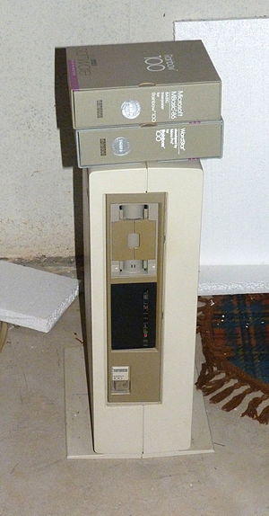 Of note was the single motor used to drive both disk drives via a common spindle, which were arranged one on top of the other. That meant that one disk went underneath the first but inserted upside-down. This earned the diskette drive the nickname "toaster". The unusual orientation confused many first-time users, who would complain that the machine would not read the disk.