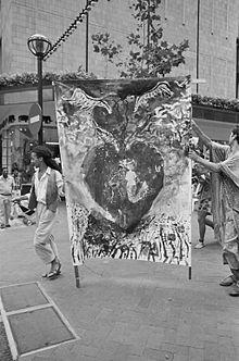 What is also significant about this event, is the willing participation of a banner painted by Beezy Bailey, joined by the anarchist Nat Tardrew, filmographer Nodi Murphy, ecologist and artist Karen Rolfes, performance artist Rehane Abrahams, publisher David Robert Lewis, musician Philip Nangle, an art teacher called "Johno" along with an assortment of characters that appear on a piece of documentary footage shot by Craig Mathews of Doxa Productions.