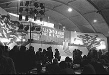 The Rally for the Republic (French: Rassemblement pour la République French pronunciation: [ʁa.sɑ̃.blə.mɑ̃.puʁ.la.ʁe.pyˈblik]; RPR French pronunciation: [ɛr.peˈɛr]), was a Gaullist[4][5][6][7] and conservative[8][9][10][11] political party in France. Originating from the Union of Democrats for the Republic (UDR), it was founded by Jacques Chirac in 1976 and presented itself as the heir of Gaullist politics.[12][13] On 21 September 2002, the RPR was merged into the Union for the Presidential Majority, later renamed the Union for a Popular Movement (UMP).