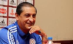 On 5 December 2014, Ramón left River Plate to become the manager of the Paraguay national team. He said "It's one of the biggest challenges of my career... There's a lot of work to do".[13] Ramón first major competition was the 2015 Copa América. His first match in the Copa America was against Argentina which they drew 2-2. Ramón's second match was against Jamaica which they won 1–0. The last match of the group stages was against Uruguay which they drew 1-1. Paraguay finished 2nd with five points in their group. Paraguay won the quarterfinal against Brazil 1-1 (3-4 on penalties). Paraguay were hammered 6-1 by Argentina in the Semifinals which them go to the third group playoff which they lost 2–0 against Peru which made them fourth in the Copa America. Ramón continued in the national team. On the Copa America Centenario, Paraguay were out of the competition in the group stage, by drawing against Costa Rica and losing to Colombia 2-1 and the US 1–0. On 12 June 2016, following an unsuccessful run at Copa América Centenario, he resigned as manager of Paraguay.[14]
