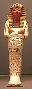 Part of the king's program included the extensive enlargement of his father's Temple of Khonsu at Karnak and the construction of a large mortuary temple near the Temple of Hatshepsut. Ramesses IV also sent several expeditions to the turquoise mines in the Sinai; a total of four expeditions are known prior to his fourth year. The Serabit el-Khadim stela of the Royal Butler Sobekhotep states: "Year 3, third month of Shemu. His Majesty sent his favoured and beloved one, the confident of his lord, the Overseer of the Treasury of Silver and Gold, Chief of the Secrets of the august Palace, Sobekhotep, justified, to bring for him all that his heart desired of turquoise (on) his fourth expedition."[18] This expedition dates to either Ramesses III or IV's reign since Sobekhotep is attested in office until at least the reign of Ramesses V.[5] Ramesses IV's final venture to the turquoise mines of the Sinai is documented by the stela of a senior army scribe named Panufer. Panufer states that this expedition's mission was both to procure turquoise and to establish a cult chapel of king Ramesses IV at the Hathor temple of Serabit el-Khadim.[19] The stela reads: