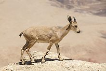 The Asian wild ass has been reintroduced to Makhtesh Ramon. In 1995 the population had increased to 40 adults in the area. The animals are hybrids of two different subspecies of the Asian Wild Ass. It is derived from the Turkmenian kulan (E. h. kulan) and the Persian onager (E. h. onager). The original subspecies, the Syrian wild ass (E. h. hemippus), is completely extinct.[2] Other larger mammals of the area include Nubian ibexes, Dorcas gazelles, striped hyenas and few Arabian leopards.