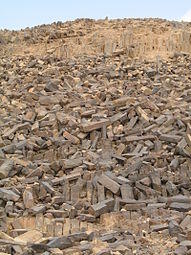 In the centre of the makhtesh is HaMinsara (The Carpentry Shop), a low hill made up of columnar jointed sandstone - polygonal prismatic columns of quartzite.