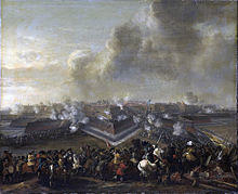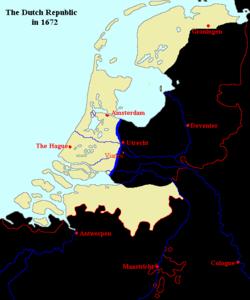 On the diplomatic front, the Holy Roman Empire and Spain took the side of the Netherlands. In 1673, Bonn fell to a Dutch army.[3] This forced the French to retreat from most of the Republic. England, Münster and Cologne made peace in 1674; the French fought on until 1678. (For the rest of the war, see Franco-Dutch War)