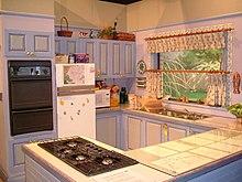 Interior sets were built at Network Seven's HSV studios in Melbourne.[3] When Seven cancelled Neighbours in July 1985, it was immediately picked up by Network Ten. When the sets were due to be collected, Seven said they had been destroyed in a fire, forcing Ten to build new sets.[6] The interior scenes are now filmed at Global Television studios in Forest Hill.[7][8] In the 1980s, the interior decor of the houses was meant to be "unobtrusive and easy to watch." The majority of the furniture and wallpaper came from normal stores, but the curtains had to be specially made to hide the fact the scenes outside the windows were painted.[9]