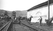 The Ligonier Valley Railroad was the first to use the method in 1878 in Latrobe, Pennsylvania.[2] It was also used in the same year by the Rochester and State Line Railroad at its Salamanca junction with the Atlantic and Great Western Railroad, a 6 ft (1,829 mm) gauge line.