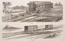 It was invented and patented in 1876 by Robert Henry Ramsey as a simple and rapid device for removing trucks at repairing shops, and for transferring car-bodies between rail roads of different gauges.[1]