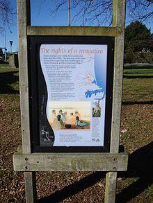 A third interpretation fits equally well with this translation, interlinking concepts related to the identity of the ‘tira’. In the first instance, the conditional hospitality[6][7][8] presented in the form of weaving created for the ‘tira’ of guests. In the second instance, the collective intentionality[9][10] "enacted in the weaving" of the ‘tira’ of hosts.[11] Together, these concepts highlight the value attached to the "personal relationship" between the leader and their group.[11] This type of relationship is similar to the mahara atawhai (endearment or "benevolent concern") offered in the Treaty of Waitangi’s preamble by Queen Victoria, reflecting the pre-nineteenth century "personal bond between the ruler and subject" (McHugh, 1991, p. 177).[12]