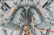 Produced from 1941 to 1945, the V-770 featured a two-piece aluminum alloy crankcase, steel cylinder barrels with integral aluminum alloy fins and aluminum alloy heads. The V-770 was the only American inverted V-12 air-cooled engine to reach production. The engine was used in very few aircraft, among them the short lived Fairchild AT-21 twin-engine bomber trainer,[5] and in the two Bell XP-77 light-weight fighter prototypes.