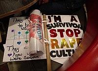Many movements have addressed rape culture, such as SlutWalk and Me Too. These movements have helped share people's stories through hashtags that are embodied and connected to rape.[10]