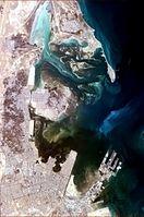 Tarut Bay, seen from the International Space Station; Ras Tanura is on the north side of the bay