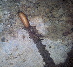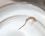 Rat-tailed maggots are the larvae of certain species of hoverflies belonging to the tribes Eristalini and Sericomyiini.[1] A characteristic feature of rat-tailed maggots is a tube-like, telescoping breathing siphon located at its posterior end.[2] This acts like a snorkel, allowing the larva to breathe air while submerged. The siphon is usually about as long as the maggot's body (20 mm (0.79 in) when mature), but can be extended as long as 150 mm (5.9 in). This organ gives the larva its common name.[2]