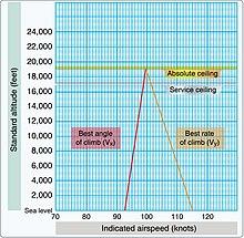 VX is the indicated forward airspeed for best angle of climb. This is the speed at which an aircraft gains the most altitude in a given horizontal distance, typically used to avoid a collision with an object a short distance away. By contrast, VY is the indicated airspeed for best rate of climb,[2] a rate which allows the aircraft to climb to a specified altitude in the minimum amount of time regardless of the horizontal distance required. Except at the aircraft's ceiling, where they are equal, VX is always lower than VY.