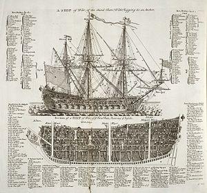 This classification scheme was substantially altered in late 1653 as the complements of individual ships were raised. From about 1660 the classification moved from one based on the number of men to one based on the number of carriage guns a ship carried.[1]