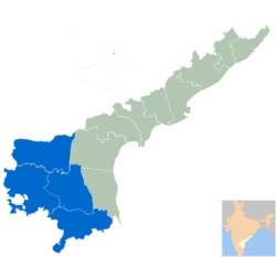 Rayalaseema (Rāyalasīma) is a geographic region in the Indian state of Andhra Pradesh. It comprises four southern districts of the state namely, Anantapur, Chittoor, Kadapa and Kurnool.[2][3] As of 2011 census of India, the region with four districts had a population of 15,184,908 and covers an area of 67,526 km2 (26,072 sq mi).[4]