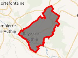 Raye-sur-Authie is located 15 miles (24 km) southeast of Montreuil-sur-Mer on the D119 road, on the river Authie, the border with the Somme department.