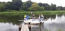 Small stream-powered river ferry Uperis was designed to transport people cross the river Neris in Vilnius.[4]