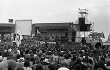 1988 saw an attempt to take the festival in a mainstream commercial pop direction,[11] featuring acts including Starship, Squeeze, Hothouse Flowers, Bonnie Tyler and Meat Loaf (who was bottled off stage),[12] and the subsequent disputes led to the ousting of original festival promoter Harold Pendleton by the Mean Fiddler Music Group organisation.[13]