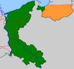 Most of long Germanized Lower Silesia, Farther Pomerania and Eastern Prussia remained undisputed.[11] However, in reaction to Hitler's Germany threats to Poland shortly before the outbreak of World War II, Polish nationalists displayed maps of Poland including those ancient Polish territories as well, claiming their intention to recover them.