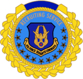 The U.S. Air Force's Basic Recruiter Badge is authorized for wear by all personnel who are assigned to active duty Air Force recruiting stations. The badge is worn as a decoration centered on the left uniform pocket for males and centered on the right side of the uniform above the nameplate for females. Those recruiters who have completed certification as recruiters earn the Certified Recruiter Badge, which is identical to the Basic Recruiter Badge but has a blue ring that surrounds its perimeter. Depending on the recruiter's personal achievement, the recruiter can earn a Silver Recruiter Badge (badge surrounded with silver wreath) or Gold Recruiter Badge (badge surrounded with gold wreath), which is the highest award a recruiter can achieve. Also Air Force recruiters can earn the Senior Recruiter Badge, Master Recruiter Badge, or Command (Cmd) Master Recruiter Badge. The Senior Recruiter Badge is identical to the Silver Recruiter Badge but has a white star at the top of the wreath with a numerical designation denoting the number of times the senior recruiter has earned a Silver Recruiter Badge. The Master Recruiter Badge looks similar to the Senior Recruiter Badge but has a distinctive wreath atop the badge with a large three-dimensional (3D) silver nautical star set in a blue background. The Command Master Recruiter Badge is the same as the Master Recruiter Badge except the large 3D silver nautical star is replaced with a large 3D gold nautical star.[14][15]