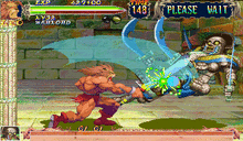 The fighting system itself is similar to previous Capcom fighting games such as the Street Fighter series with a few key differences. First of all, the vitality gauge of each computer-controlled opponent fought by the player during Quest mode is displayed across the bottom of the screen, and is much larger than the player's own vitality gauge.[2] Also, as the player lands hits on their opponents, various coins and treasure chests come out. Collecting coins provides experience points, while various items can be found in treasure chests such as orbs (used to perform super moves) and food (which replenishes the player's vitality). These elements make the game very similar to a side-scrolling action game rather than a traditional competitive fighting game.