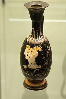 The typical Sicilian style only developed around 340 BC. Three groups of workshops can be distinguished. The first, known as the Lentini-Manfria Group, was active in Syracusae and Gela, a second, making Centuripe Ware around Mt. Aetna, and a third on Lipari. The most typical feature of Sicilian vase painting is the use of additional colours, especially white. In the early phase, large vessels like chalice kraters and hydriai were painted, but smaller vessels like flasks, lekanes, lekythoi and skyphoid pyxides are more typical. The most common motifs are scenes from female life, erotes, female heads and phlyax scenes. Mythological scenes are rare. Like in all other areas, vase painting disappears from Sicily around 300 BC.[28]