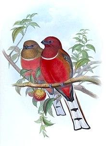 Trogon erythrocephalus was the scientific name proposed by John Gould in 1834 for a red-headed trogon specimen from Yangon in Myanmar.[3] In the 19th and 20th centuries, several specimens were described:
