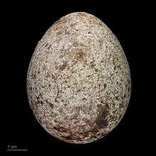 The female red-tailed tropicbird lays one egg, which both parents incubate[38] for 42 to 46 days.[37] The male generally takes the first turn on the egg after it is laid.[40] Ranging from 5.4 to 7.7 centimetres (2.1 to 3.0 in) long (averaging between 6.3 and 6.8 centimetres (2.5 and 2.7 in), depending on location) and 4.5 to 4.8 centimetres (1.8 to 1.9 in) wide, the oval eggs are pale tan with brown and red-black markings that are more prominent on the larger end.[22]