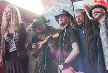 Rednex in 2020: Cash, Jiggie McClagganahan, Spades, Pickles, Moe Lester the Limp, Boneduster Crock and Pervis the Palergator, during the video recording of Nowhere in Idaho. | |