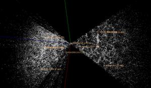 In astronomy, a redshift survey is a survey of a section of the sky to measure the redshift of astronomical objects: usually galaxies, but sometimes other objects such as galaxy clusters or quasars. Using Hubble's law, the redshift can be used to estimate the distance of an object from Earth. By combining redshift with angular position data, a redshift survey maps the 3D distribution of matter within a field of the sky. These observations are used to measure detailed statistical properties of the large-scale structure of the universe. In conjunction with observations of early structure in the cosmic microwave background, these results can place strong constraints on cosmological parameters such as the average matter density[1][2] and the Hubble constant.[3]