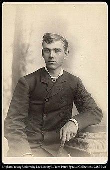 Smoot was born in 1862 in Salt Lake City, Utah Territory. He was the son of Mormon pioneer from Kentucky and Iowa, Abraham O. Smoot, who served as mayor of the city from 1856 to 1862. His mother was Anne Kristina Morrison Smoot, also known as Anne Kirstine Mauritzen before her marriage. Anne Kristina Morrison Smoot was Smoot's father's fifth wife of six plural marriages and 27 children, three of whom Abraham O. Smoot adopted.[5]:99–102 The family moved to Provo, Utah, when his father was called by Brigham Young to head the stake there. Smoot attended the University of Utah and graduated from Brigham Young Academy (now Brigham Young University) in Provo in 1879. Following which, Smoot served as a Mormon missionary in England. After returning to Utah, Smoot married Alpha M. Eldredge of Salt Lake City on September 17, 1884. They had six children together.[1] Thereafter, Smoot became a successful businessman in the Salt Lake City area. In 1895, he became increasingly involved in the hierarchy of the LDS Church, advancing in authority. On April 8, 1900, Smoot was ordained an LDS Church apostle and member of the church's Quorum of the Twelve Apostles.[1]