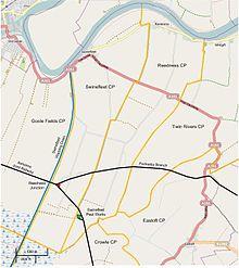 To the south of the population centre, the A161 road cuts across the parish in a straight line. It is called the King's Causeway, and is flanked by counter drains on both sides.[9] Further south, the Fockerby Branch of the Axholme Joint Railway crossed the parish, on its way from Reedness Junction to Fockerby.[10] The railway opened in stages between 1903 and 1905,[11] was closed to passengers in 1933,[12] and closed completely in 1965.[13] At the extreme southern edge of the parish, the main line of the Axholme Joint Railway to Epworth also passed through the parish. There was a siding which served Swinefleet Peat Works, to which 3 ft (914 mm) gauge tramways brought peat from Thorne Moors for processing and despatch via the railway.[14] Despite their names, Swinefleet Peat Works was in Reedness, while Reedness Junction and its railway station, where the Fockerby Branch diverged from the line to Epworth, was in the parish of Swinefleet.[9]