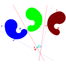 In mathematics, a reflection (also spelled reflexion)[1] is a mapping from a Euclidean space to itself that is an isometry with a hyperplane as a set of fixed points; this set is called the axis (in dimension 2) or plane (in dimension 3) of reflection. The image of a figure by a reflection is its mirror image in the axis or plane of reflection. For example the mirror image of the small Latin letter p for a reflection with respect to a vertical axis would look like q. Its image by reflection in a horizontal axis would look like b. A reflection is an involution: when applied twice in succession, every point returns to its original location, and every geometrical object is restored to its original state.