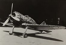 On 24 May 1939, the prototype Re.2000 conducted its maiden flight at Reggio Emilia, Emilia-Romagna, Italy, flown by Mario De Bernardi.[6][5] According to Cattaneo, early flights had quickly demonstrated the type's favourable flying attitude, including good speed and high manoeuvrability. Only minor modifications were required after the successful completion of the initial factory flight test programme; these including changes to the exhaust, the lengthening of the carburetor air intake, and the replacement of the round windshield with a framed counterpart.[5] During testing, the Re 2000 demonstrated the ability to perform better than other existing fighters then in production.[3] In mock dogfights, it could successfully fight not only the slower Fiat CR.42 biplane,[7] but even the more modern Macchi C 200 and the German Messerschmitt Bf 109E fighters.[5] However, the Re.2000 was afflicted by a major handicap in the form of the unavailability of reliable in-line engines of sufficient power; as such, the RE.2000 was able to represent only a limited advance over the rival Macchi C.200.[2]