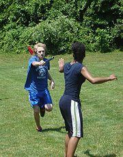 A relay race is a racing competition where members of a team take turns completing parts of racecourse or performing a certain action. Relay races take the form of professional races and amateur games. Relay races are common in running, orienteering, swimming, cross-country skiing, biathlon, or ice skating (usually with a baton in the fist). In the Olympic Games, there are several types of relay races that are part of track and field. Relay race, also called Relay, a track-and-field sport consisting of a set number of stages (legs), usually four, each leg run by a different member of a team. The runner finishing one leg is usually required to pass the next runner a stick-like object known as a "baton" while both are running in a marked exchange zone. In most relays, team members cover equal distances: Olympic events for both men and women are the 400-metre (4 × 100-metre) and 1,600-metre (4 × 400-metre) relays. Some non-Olympic relays are held at distances of 800 m, 3,200 m, and 6,000 m. In the less frequently run medley relays, however, the athletes cover different distances in a prescribed order—as in a sprint medley of 200, 200, 400, 800 metres or a distance medley of 1,200, 400, 800, 1,600 metres