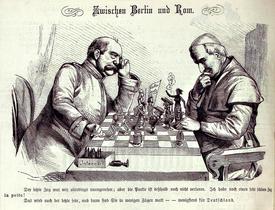 Chancellor Otto von Bismarck would not tolerate any base of power outside Germany – in Rome – having a say in German affairs. He launched a Kulturkampf ("culture war") against the power of the pope and the Catholic Church in 1873, but only in Prussia. This gained strong support from German liberals, who saw the Catholic Church as the bastion of reaction and their greatest enemy. The Catholic element, in turn, saw the National Liberals, who often happened to be Protestant, as its worst enemy and formed the Center Party.[20]