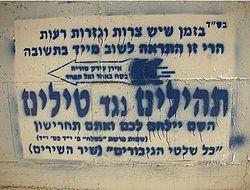 Messianic Jews who are members of Messianic congregations are among the most active missionary movements in Israel. Their proselytising has faced demonstrations and intermittent protests by the Haredi anti-missionary group Yad LeAchim, which infiltrates those movements, as well as other proselytising groups including Hare Krishna and Scientology, and maintains extensive records on their activities. Attempts by Messianic Jews to evangelize other Jews are seen by many religious Jews as incitement to "avodah zarah" (foreign worship or idolatry). Over the years there have been several arson attempts of messianic congregations.[95] There have also been attacks on Messianic Jews and hundreds of New Testaments distributed in Or Yehuda were burned.[96] While missionary activity itself is not illegal in Israel, it is illegal to offer money or other material inducements. Legislation banning missionary work outright has been attempted in the past.[97]