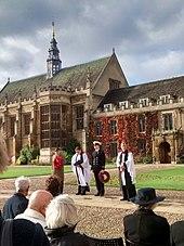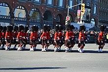 Similar ceremonies take place in provincial capitals across the country, officiated by the relevant lieutenant governor, as well as in other cities, towns, and even hotels or corporate headquarters. Schools will usually hold special assemblies for the first half of the day, or on the school day prior, with various presentations concerning the remembrance of the war dead. The ceremony participants include veterans, current members of the Canadian forces, and sea, army, and air cadet units.[32]