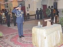 Although Hong Kong ceased to be part of the Commonwealth of Nations in 1997, the memorial service still resembles those in many other Commonwealth countries.[71] The service includes the sounding of "Last Post", two minutes of silence, the sounding of "Reveille", the laying of wreaths, and prayers, and ends with a recitation of the "Ode of Remembrance". The Hong Kong Police Band continues to perform their ceremonial duty at the service. Members of the Hong Kong Air Cadet Corps (including the Ceremonial Squadron), Hong Kong Adventure Corps, Hong Kong Sea Cadet Corps and scouting organisations are also in attendance.[72]